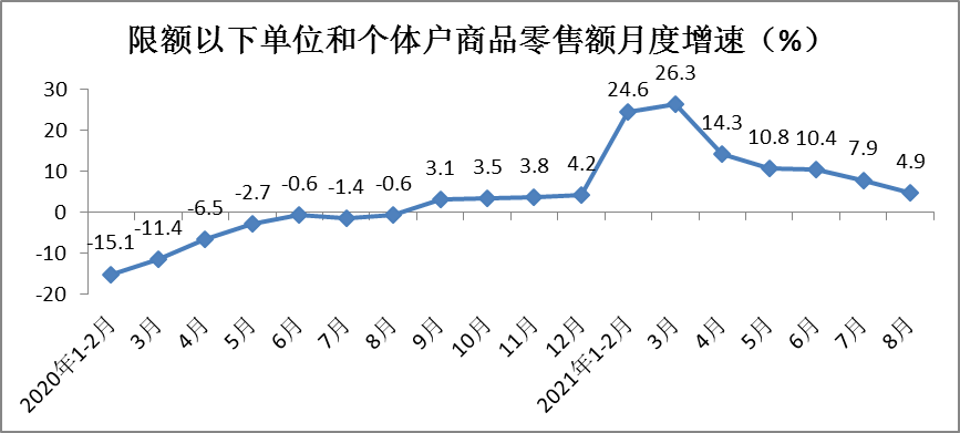 7、前8月限额以下商品零售额同比增长14.9%,餐饮收入同比增长32.8%