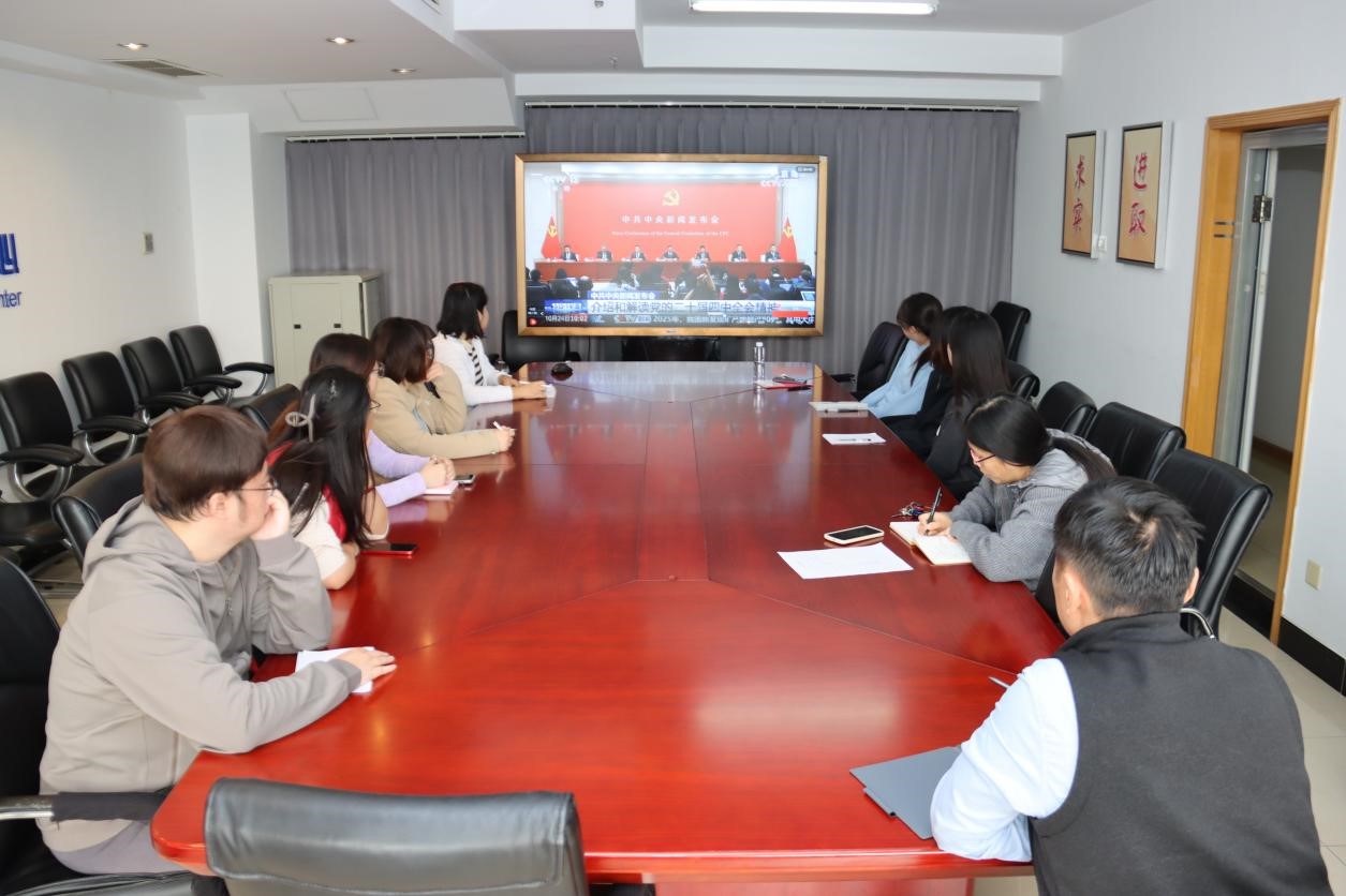 中心综合党支部组织华天办公区党员、青年理论小组成员集中观看直播学习,西单办公区的党员干部在办公室同步收看直播,退休党员自行在家收听收看,并通过微信群就收听收看感想进行了交流。大家认真聆听、深入思考、积极交流,深刻领会全会精神的重大意义与丰富内涵。