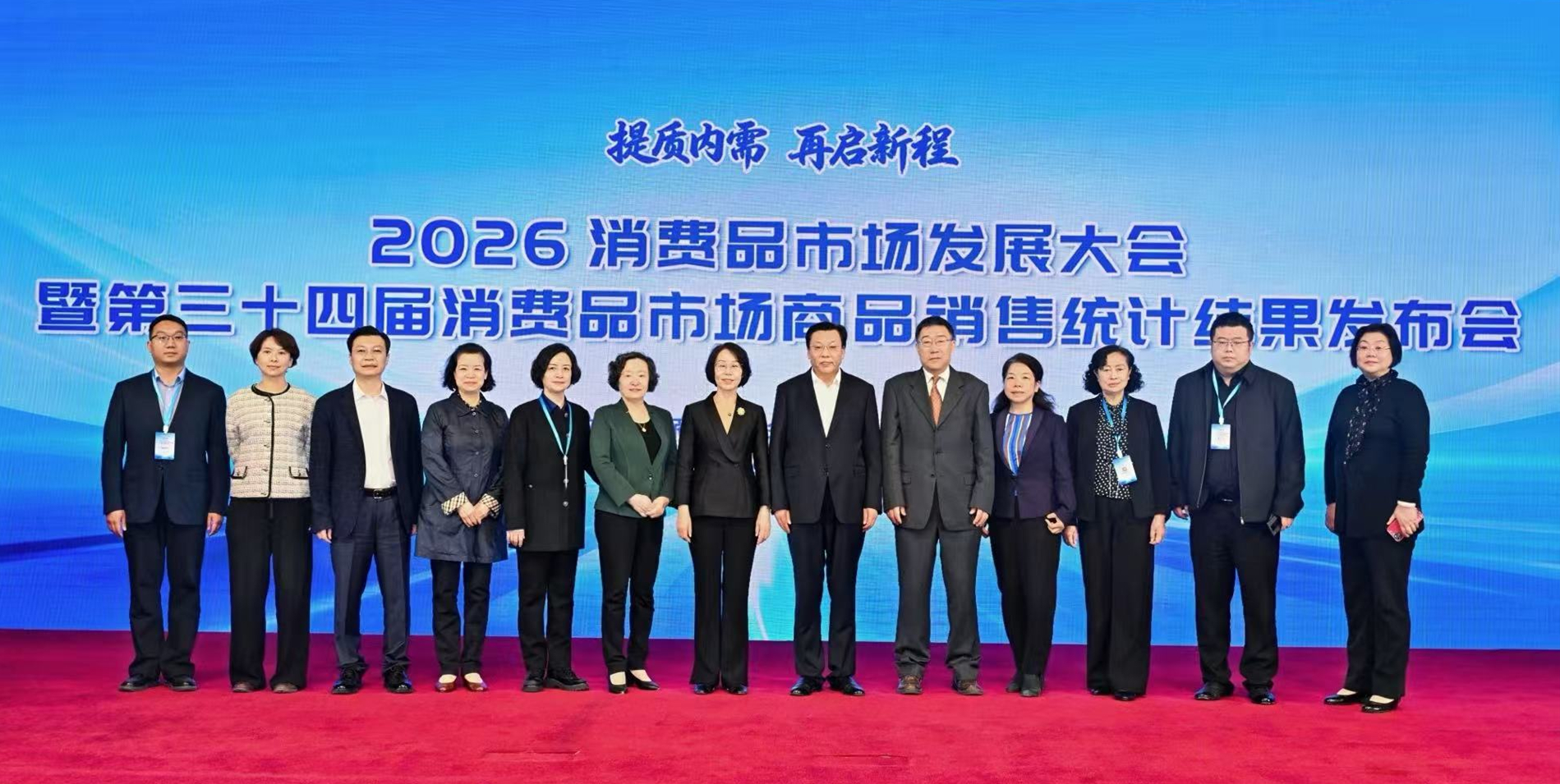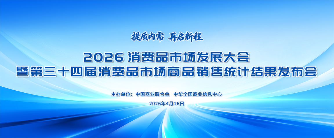 2026 年 4 月 16 日,由中国商业联合会、中华全国商业信息中心主办的2026 年消费品市场发展大会暨第三十四届消费品市场商品销售统计结果发布会在北京成功举办。本次大会立足 “十五五” 开局之年,以 “提质内需 再启新程” 为主题,深入贯彻落实党的二十届四中全会和中央经济工作会议精神,全面解读 2025 年我国消费品市场运行情况,科学前瞻 2026 年市场发展趋势,并权威发布 2025 年度消费品市场商品销售统计结果。大会汇聚行业智慧与各方力量,精准研判新阶段消费趋势与发展机遇,分享创新实践经验,宣介优质标杆品牌,全力赋能商贸流通业与消费品市场高质量发展。