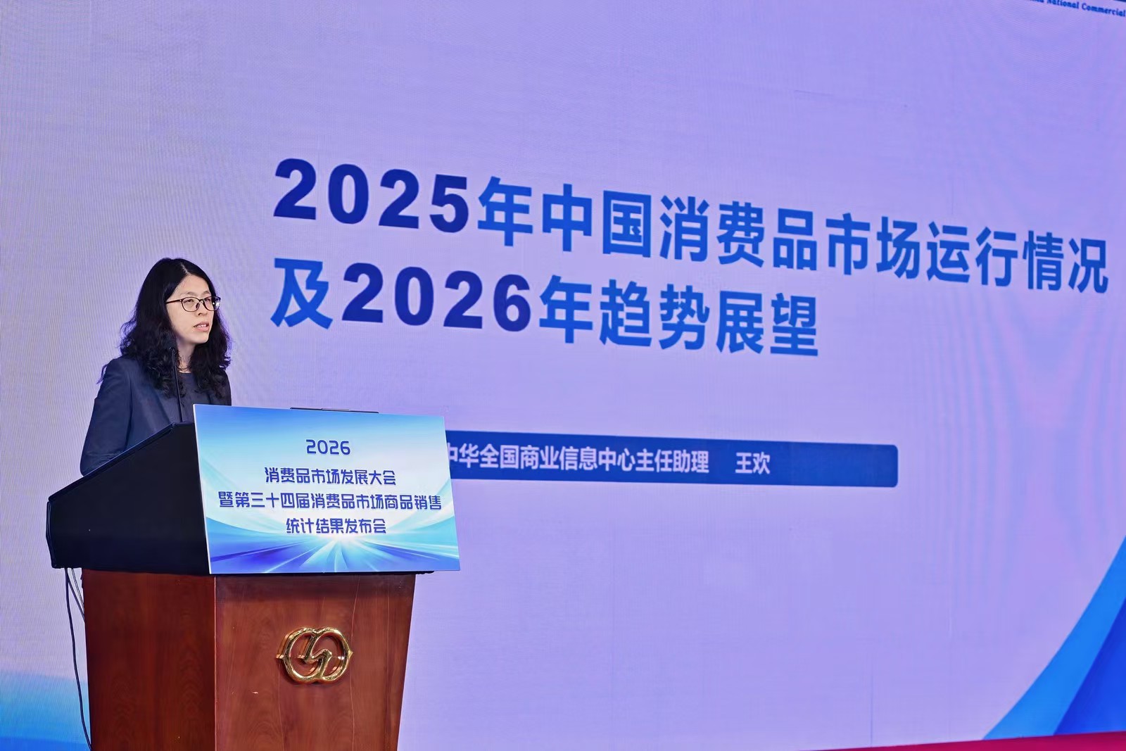 中华全国商业信息中心主任助理王欢在会上作关于2025 年消费品市场运行情况及 2026 年趋势展望报告。报告围绕2025 年我国宏观经济运行情况、我国消费品市场运行情况、我国消费市场呈现出的主要特点、全国重点大型零售企业销售情况分析、2026 年我国消费品市场发展环境及我国消费品市场发展趋势六大维度,对我国消费品市场展开全面剖析与系统解读。