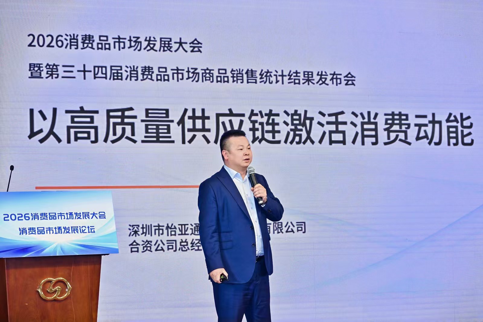 深圳市怡亚通供应链股份有限公司合资公司总经理卢育林带来《以高质量供应链激活消费动能》主题分享。他立足当前消费新周期,深度解析供给侧痛点,提出以高质量供给重构供需关系,分享数智化供应链、全链路服务整合、一城一策产业落地等经验,提供降本增效、精准匹配市场、高效触达终端的可行路径,助力品牌以稳定高效的供应链能力支撑消费升级、释放长效增长动能。