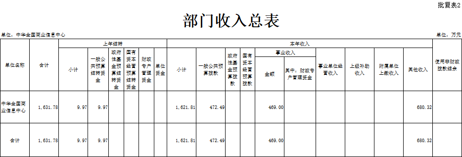 注:中华全国商业信息中心无政府性基金预算拨款收入,也无使用政府性基金安排的支出,故本表无数据。