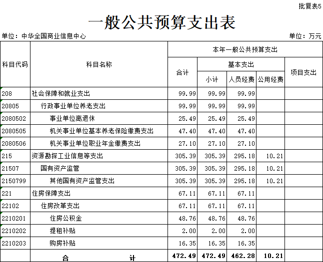 注:中华全国商业信息中心无国有资本经营预算收入,也无使用国有资本经营预算安排的支出,故本表无数据。