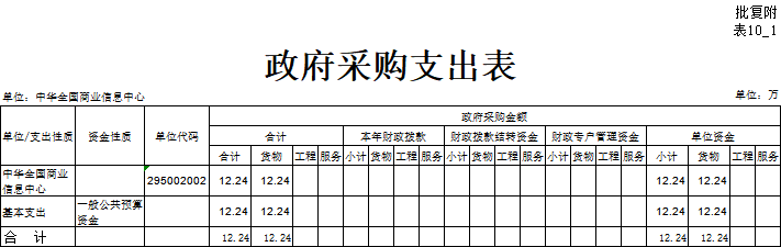 2026年,中华全国商业信息中心政府采购预算总额12.24万元,均为政府采购货物预算。