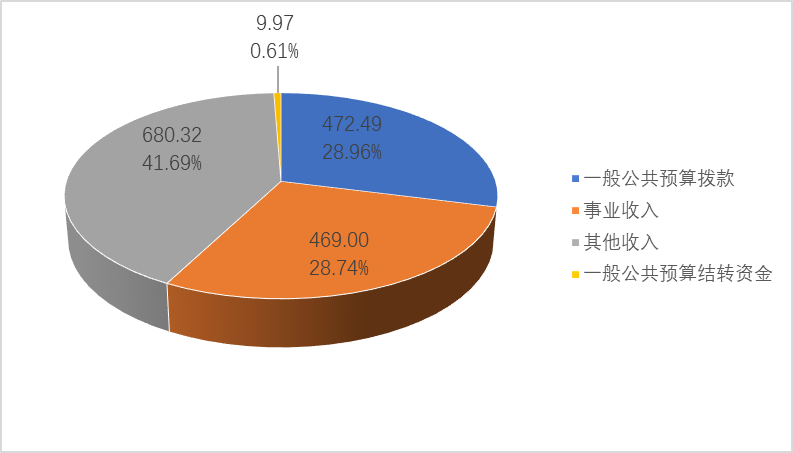 2026年收入预算1631.78万元,其中一般公共预算拨款收入472.49万元,占28.96%;事业收入469.00万元,占28.74%;其他收入680.32万元,占41.69%;一般公共预算结转资金9.97万元,占0.61%。