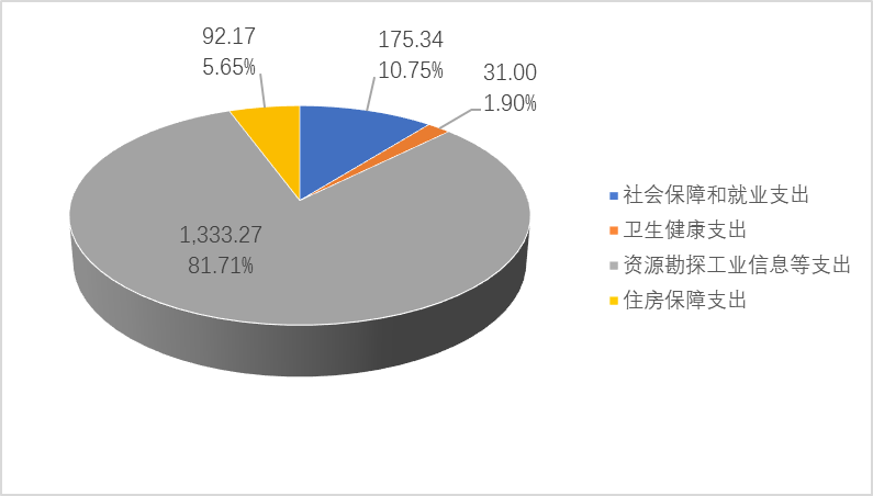 2026年支出预算1631.78万元,其中社会保障和就业支出175.34万元,占10.75%;卫生健康支出31.00万元,占1.90%;资源勘探工业信息等支出1333.27万元,占81.71%;住房保障支出92.17万元,占5.65%。